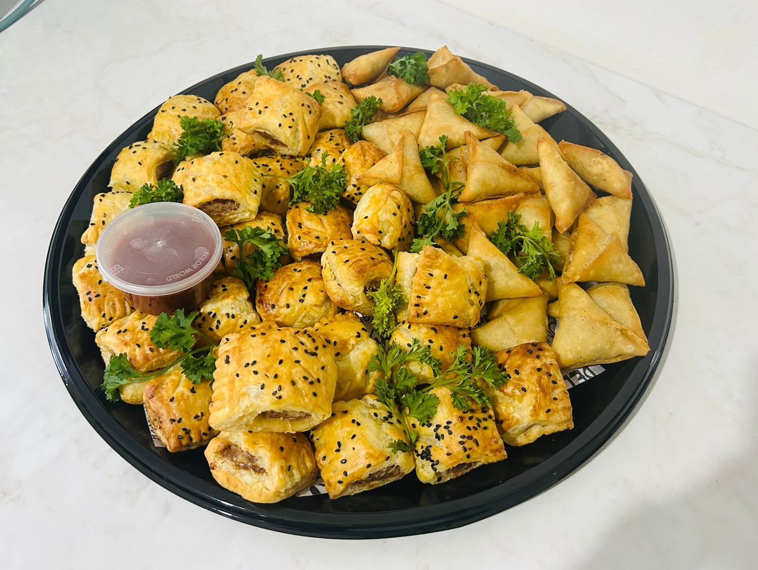 There’s something undeniably comforting about a platter filled with warm, golden savouries — and nothing hits the spot quite like a beautifully arranged mix of crispy samoosas and flaky sausage rolls. This platter is the perfect balance of flavour, texture and nostalgia, making it a favourite for any gathering, big or small.